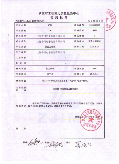 • 吊秤傳感器拉力檢測證